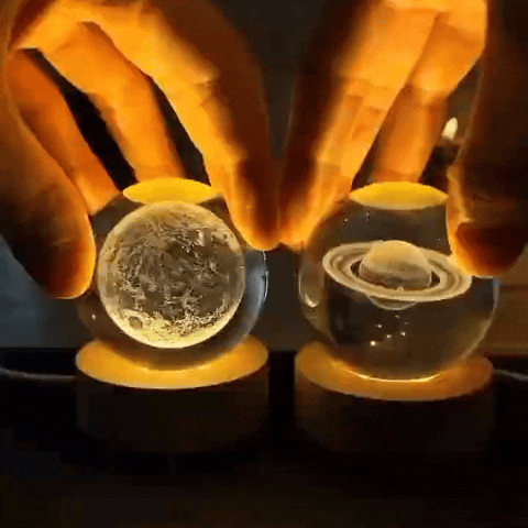 3D Crystal Ball Night Light with USB and Wooden Base for Home Decor, Office, Birthday Gift & Kids Bedroom